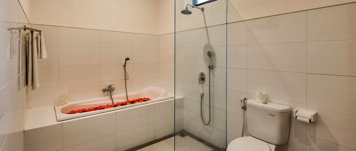 Measure 75 square meters, One Bedroom Superior Villa Private Pool at Gracia Bali Villas Seminyak can accommodate for two adult plus 1 chidlren, and available with 1 large double bed. The villa has a private bathroom with shower facilities, air conditioning, private entrance, and flat-screen TV.