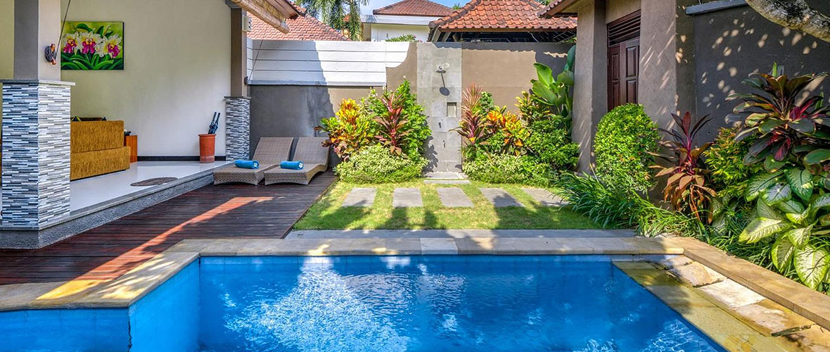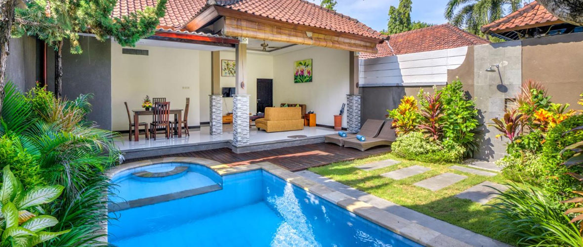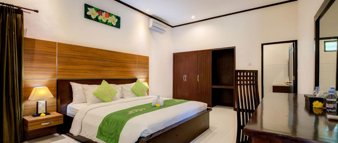 Two-Bedroom Superior Villa Private Pool at Gracia Bali Villas offers a spacious villa with 250 square meter in size and consists of 2 large double beds, can acccomodate 4 adult plus 2 chidlren and a terrace with garden view. This villa has a private pool, private bathroom with shower and bathub facilities, safe and Free WiFi! in all rooms<